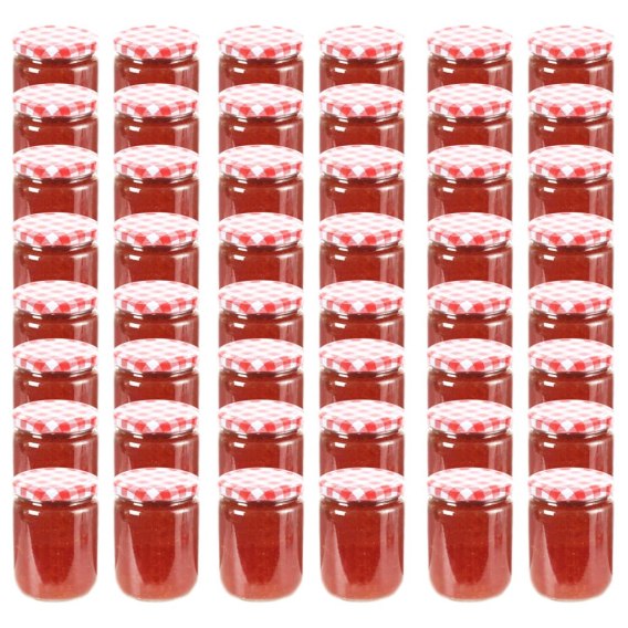 SZKLANE SŁOIKI NA DŻEM BIAŁO-CZERWONE POKRYWKI 48 SZT 230ML