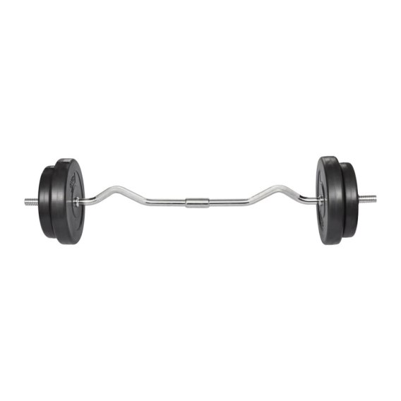 Ta sztanga z ciężarkami jest idealna do domowych lub osobistych siłowni. Zestaw składa się z drążka o wadze 5 kg i talerzy o łącznej masie 25 kg. Zestaw z giętą sztangą może być łączony z naszymi ławkami do ćwiczeń i / lub naszymi zestawami hantli dla jeszcze lepszego efektu.