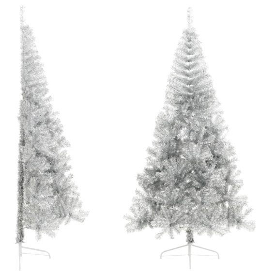 SZTUCZNA CHOINKA POŁÓWKA ZE STOJAKIEM, SREBRNA, 240CM, PET