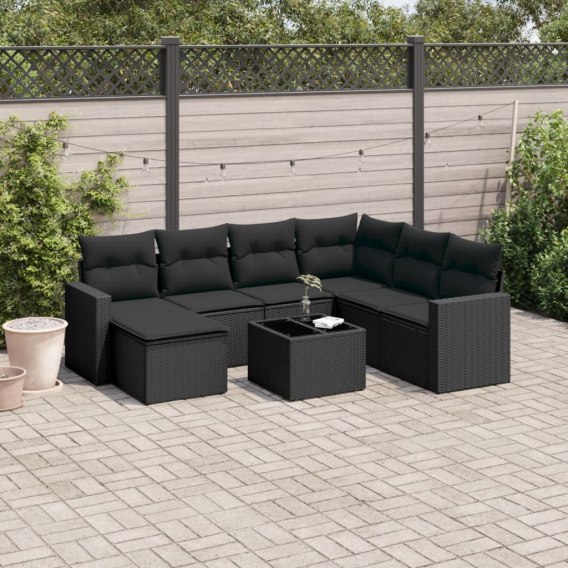 VidaXL 8-cz. zestaw wypoczynkowy do ogrodu, z poduszkami, czarny