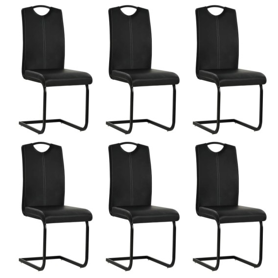 VidaXL Krzesła stołowe, wspornikowe, 6 szt., czarne, sztuczna skóra