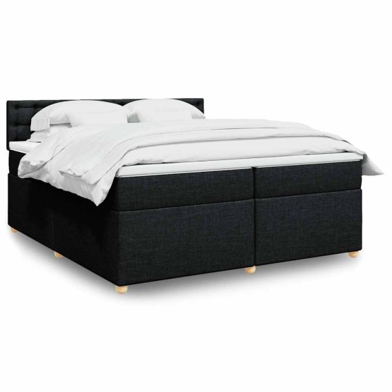 VidaXL Łóżko kontynentalne z materacem, czarne, tkanina, 200x200 cm