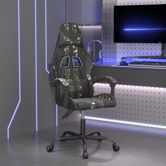 VidaXL Obrotowy fotel gamingowy, czarny i moro, sztuczna skóra