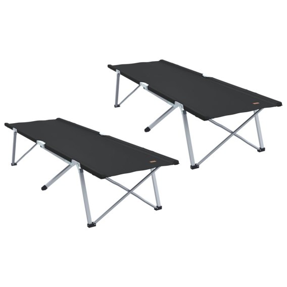 VidaXL Składane łóżka kempingowe 2 sztuki z torbą przenośną Czarny 600D Tkanina Oxford