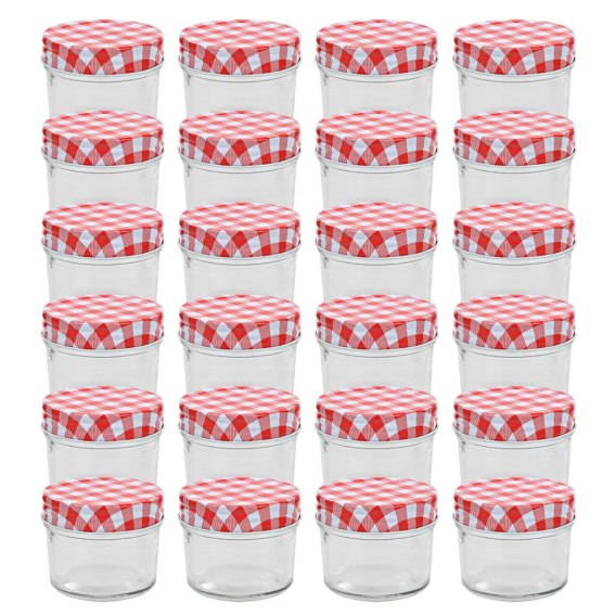 VidaXL Szklane słoiki na dżem, biało-czerwone pokrywki, 24 szt, 110 ml