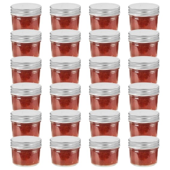 VidaXL Szklane słoiki na dżem, srebrne pokrywki, 24 szt., 110 ml