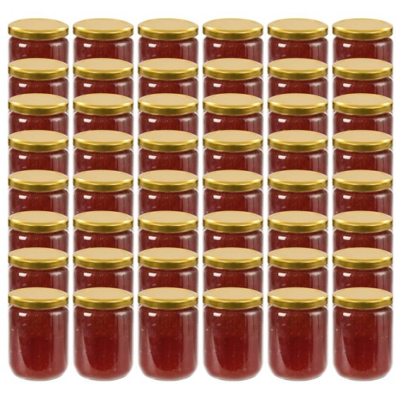 VidaXL Szklane słoiki na dżem, złote pokrywki, 48 szt., 230 ml