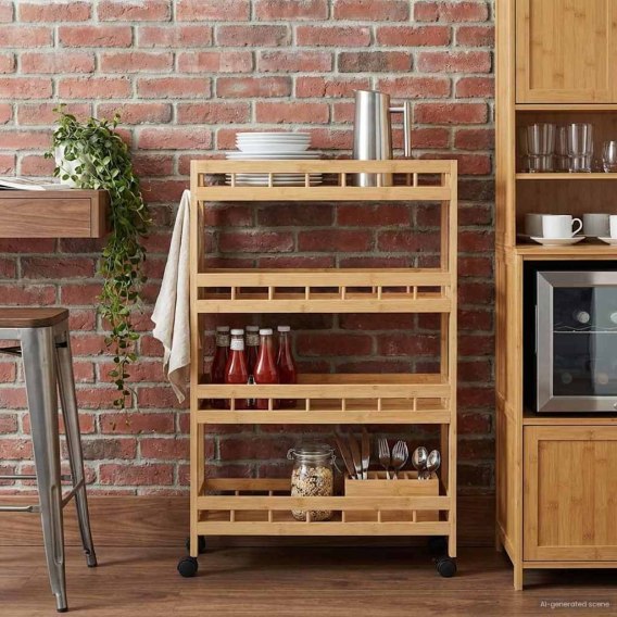 - Wysokiej jakości bambus: Wykonany z bambusa, ten wózek dodaje naturalnego, ciepłego wyglądu Twojej kuchni. Z jego wytrzymałością i odpornością, masz stabilną powierzchnię, na której możesz polegać, a także odporność na wilgoć, co utrzymuje jego piękno przez długi czas.