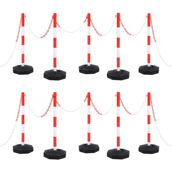 10-metrowy, plastikowy łańcuch można łatwo przymocować do słupków, aby wygrodzić przestrzeń. Zestaw jest lekki, a tym samym można go łatwo przenosić. Dołączoną podstawę można wypełnić wodą lub piaskiem dla większej stabilności. Wyraziste kolory sprawiają, że słupki te są dobrze widoczne nawet przy słabym oświetleniu.
