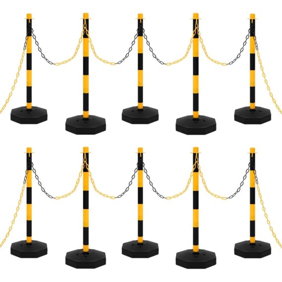 10-metrowy, plastikowy łańcuch można łatwo przymocować do słupków, aby wygrodzić przestrzeń. Zestaw jest lekki, a tym samym można go łatwo przenosić. Dołączoną podstawę można wypełnić wodą lub piaskiem dla większej stabilności. Wyraziste kolory sprawiają, że słupki te są dobrze widoczne nawet przy słabym oświetleniu.