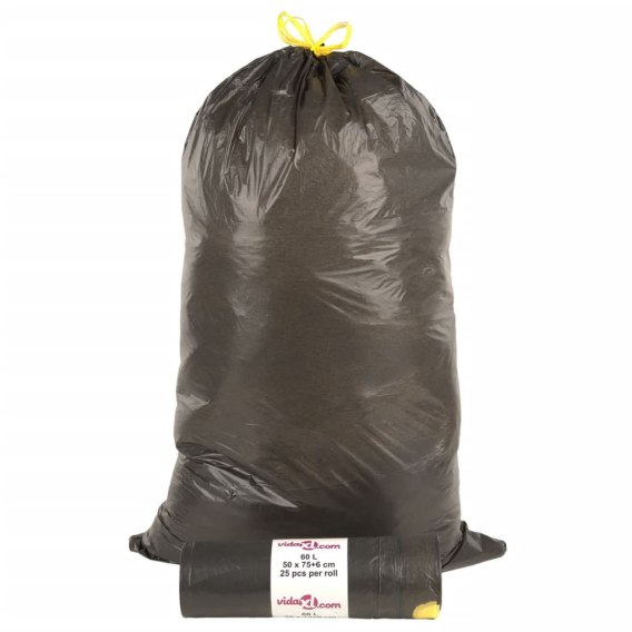 WORKI NA ŚMIECI ŚCIĄGANE TAŚMĄ 250 SZT. CZARNE 60 L