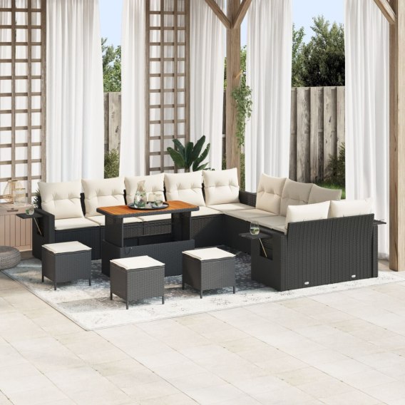 ZESTAW 13-CZĘŚCIOWY SOF OGRODOWYCH Z PODUSZKAMI CZARNY POLIRATTAN AKACJA ZESTAW 3-CZĘŚCIOWY SOF OGRODOWYCH Z PODUSZKAMI CZARNY