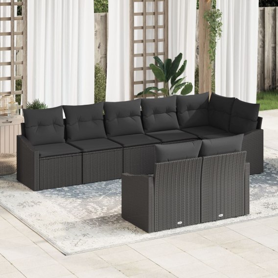 ZESTAW MEBLI OGRODOWYCH 8-ELEMENTOWY Z PODUSZKAMI CZARNY RATTAN SYNTETYCZNY