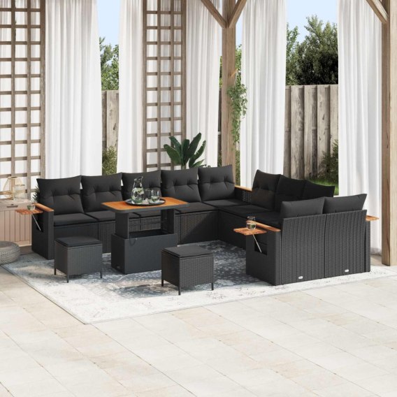ZESTAW SOF NA OGRÓD Z PODUSZKĄ 17 EL. CZARNY POLIRATTAN
