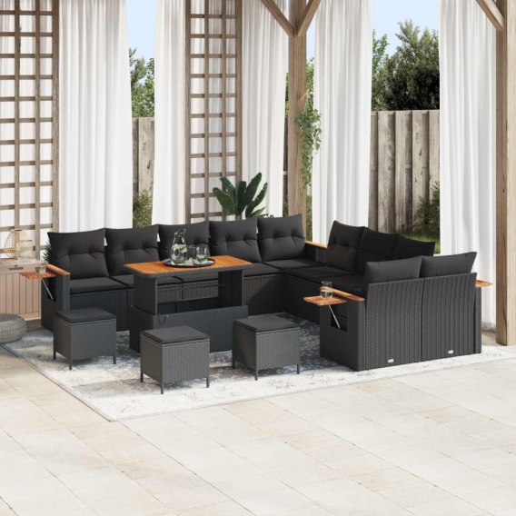 ZESTAW SOF NA OGRÓD Z PODUSZKĄ 18 EL. CZARNY POLIRATTAN