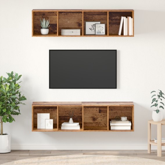 ZESTAW SZAFEK RTV 2 SZT. STARE DREWNO 37X37X142.5CM