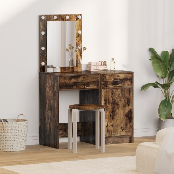 ZESTAW TOALETKI Z OŚWIETLENIEM LED 2-CZĘŚCIOWY Z DREWNA INŻYNIERYJNEGO DYMIONEGO DĘBU